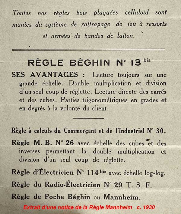 Notice 'Règle à calculs par Mannheim' (1851) (remerciements