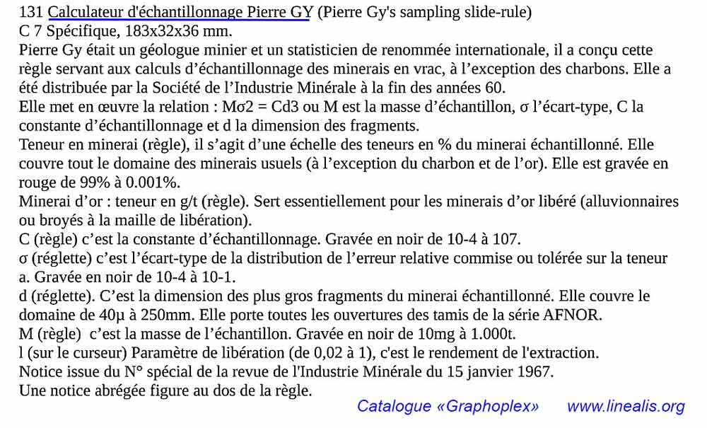 CALCULATEUR D'ECHANTILLONNAGE P. GY