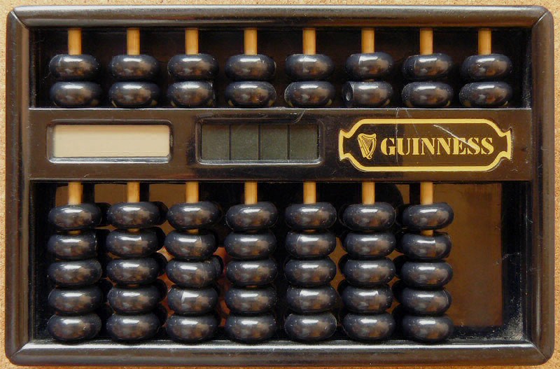 Cet ensemble 'hybride' comporte une calculatrice et un boulier Suan Pan (fabriqué au Japon).